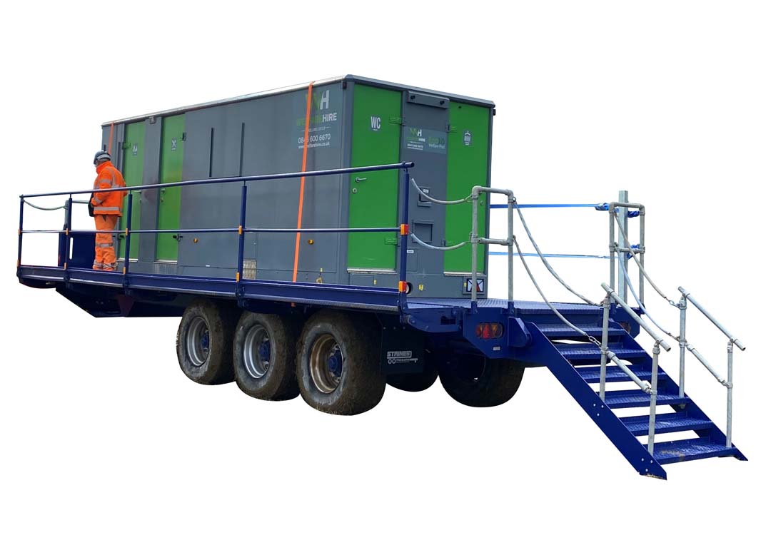 Our walkway trailers are perfect if you are needing to move large usable units around a site, where they will only be stationary for a short period, till they get move on to their next location. Allowing you to leave your unit on the trailer.